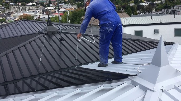 Painting A Metal Roof Painting With An Airless Paint Sprayer Youtube